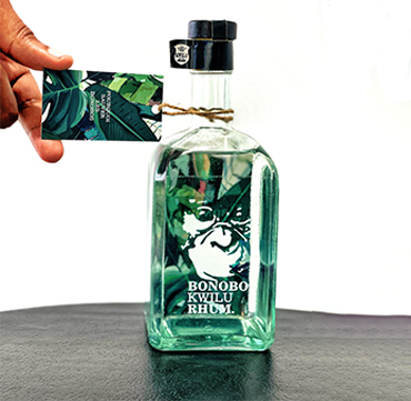 Rhum blanc industriel commercialisé dans une bouteille de 75 cl. 20% des bénéfices sont affectés à la protection des Bonobos en RDC